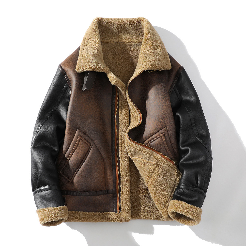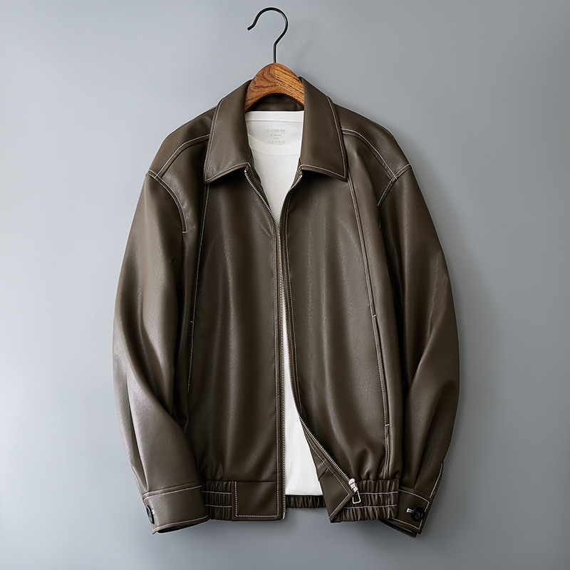 Men's Fashion Casual Leather Coat Fur Collar Jacket